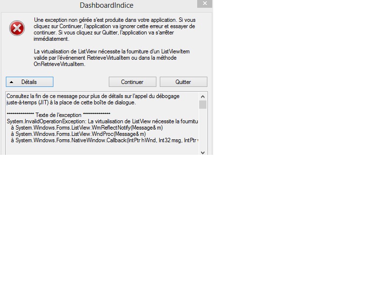 [Résolu] Plantage a l'ouverture avec le dashboardindice