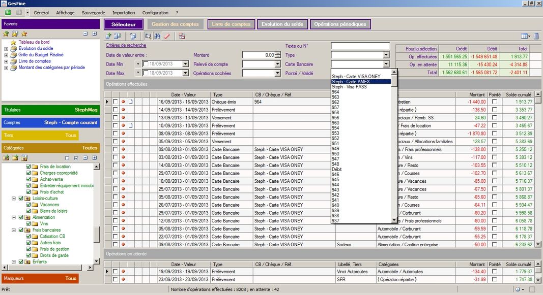 Après avoir réimporté (100 % successful), je constate que le Combobox"Carte Bancaire" des critères de sélection (mais aussi celui du formulaire de création d'opération) mélange allègrement CB, numéros de chèques... Voir photo 2.