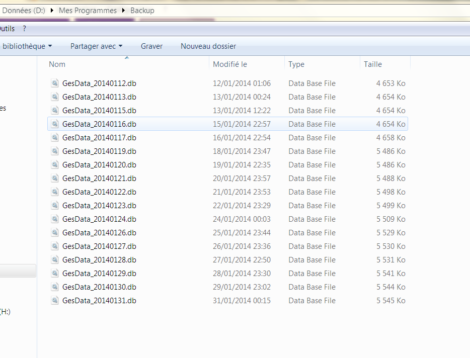 Or j'ai eu la surprise de voir que GesFine avait transféré de backup à G:/ les 6 premières sauvegardes (cf. copies d'écran) et seulement les 6 premières.